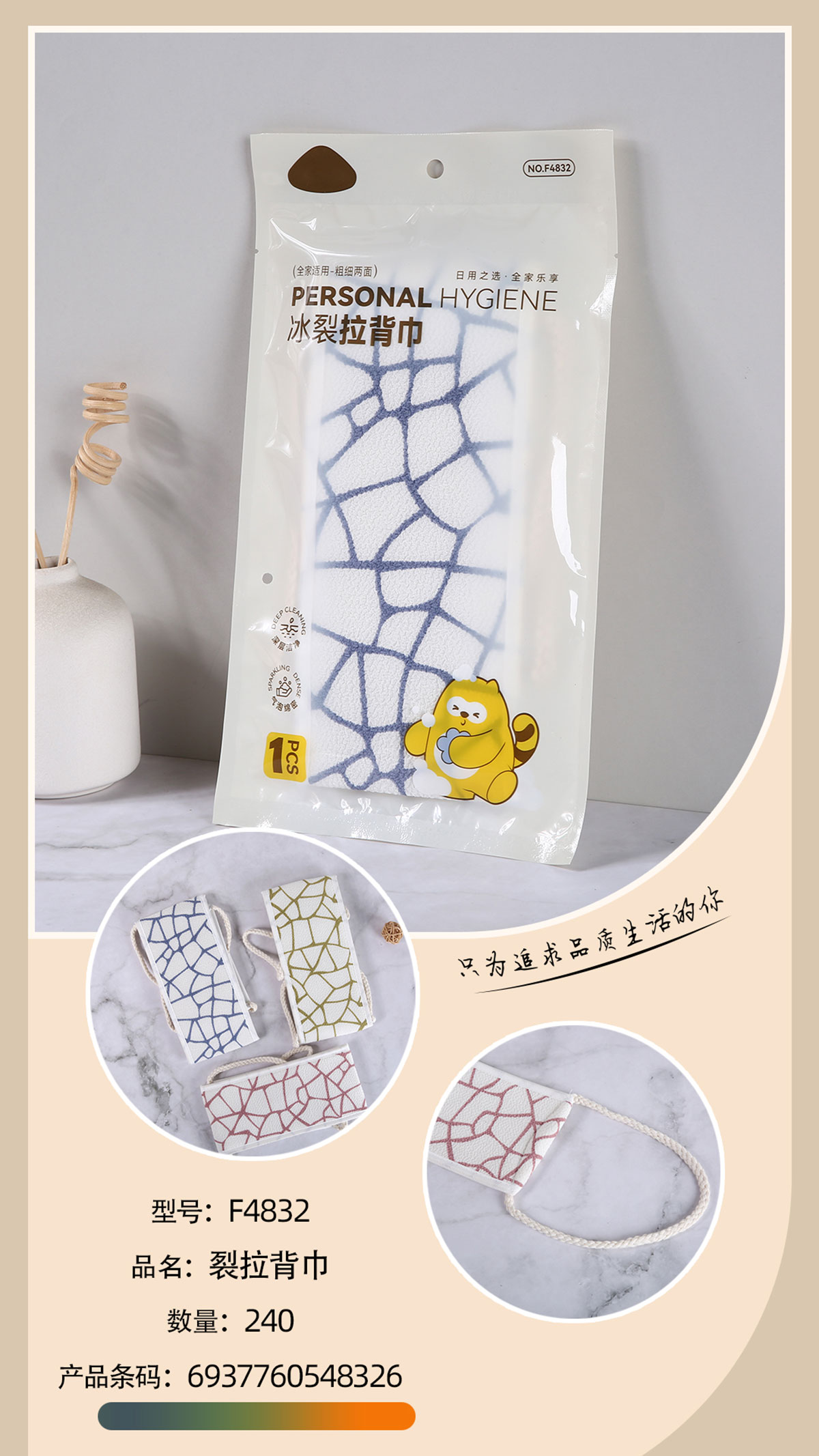 Stuff:粘胶纤维 里料:毛巾(涤棉)海绵