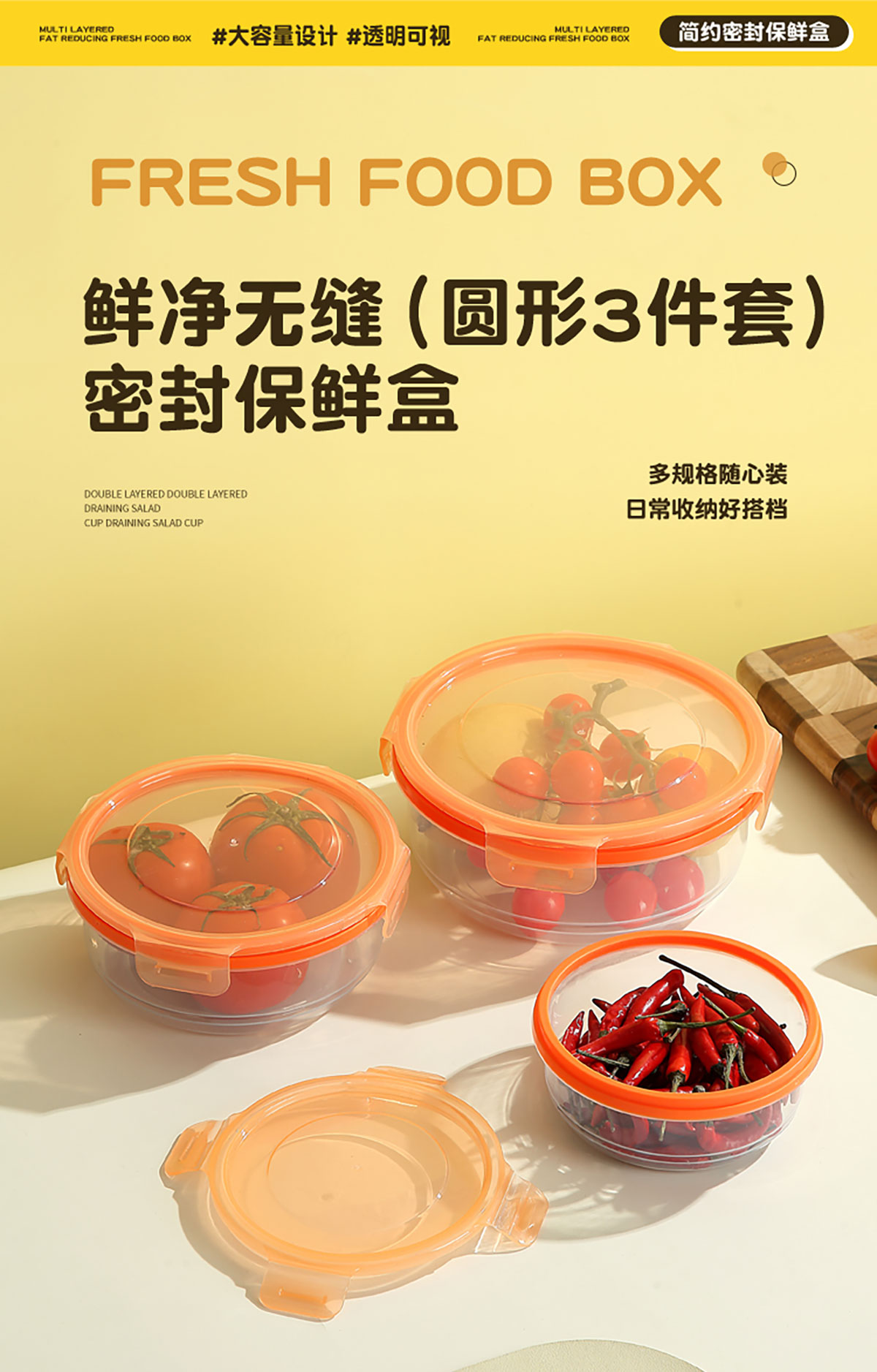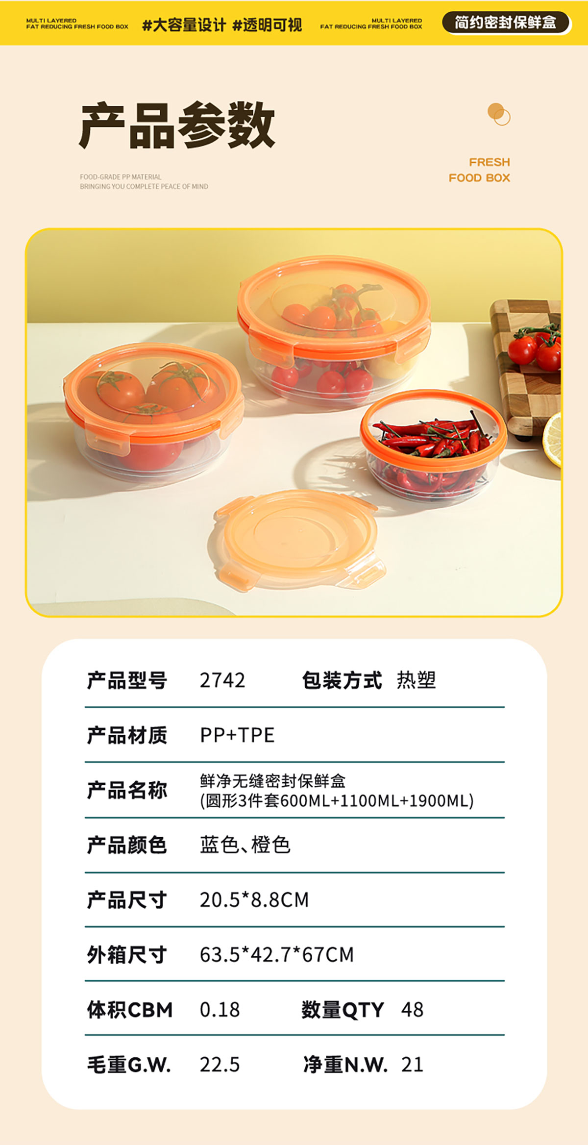 Size: 205*88mm/圆形3件套600ml+1100ml+1900ml