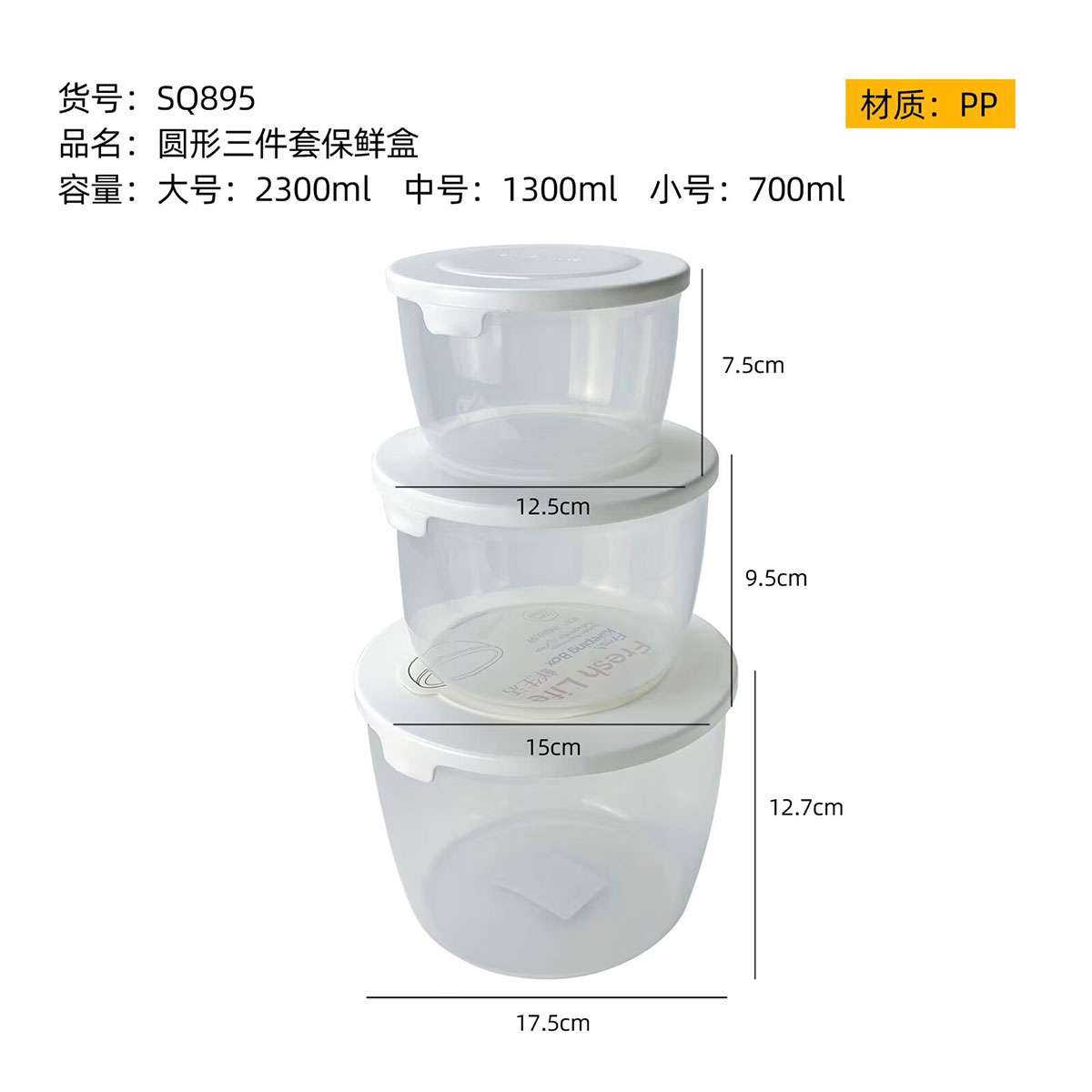 SQ-895(三件套):小号:125*75mm/700ml 中号:150*95mm/1300ml 大号:175*127mm/2300ml