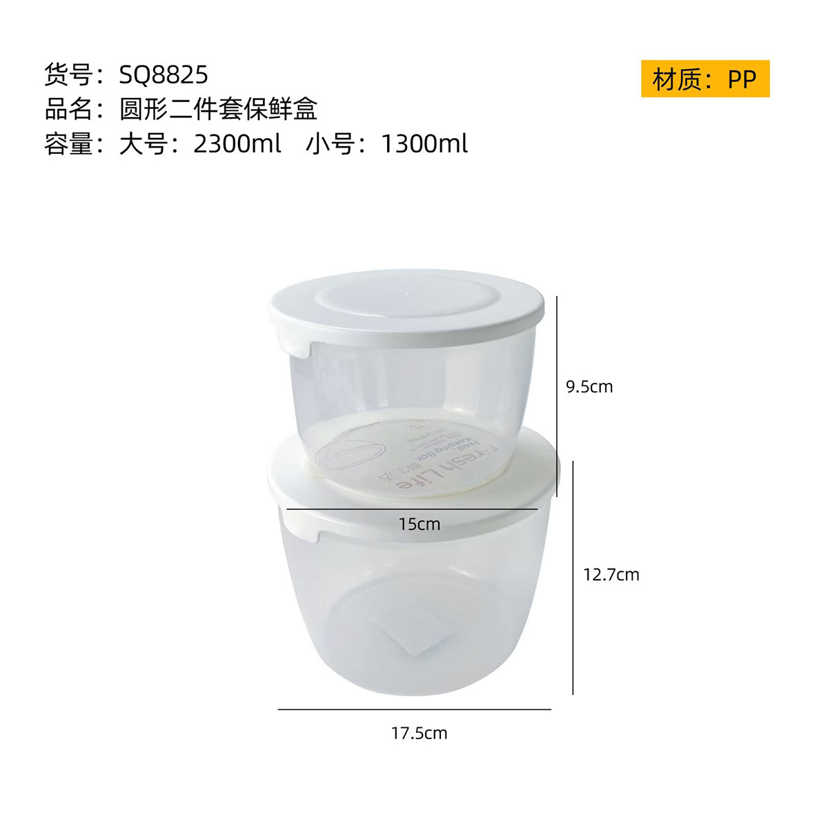SQ-8825(二件套):中号:150*95mm/1300ml 大号:175*127mm/2300ml