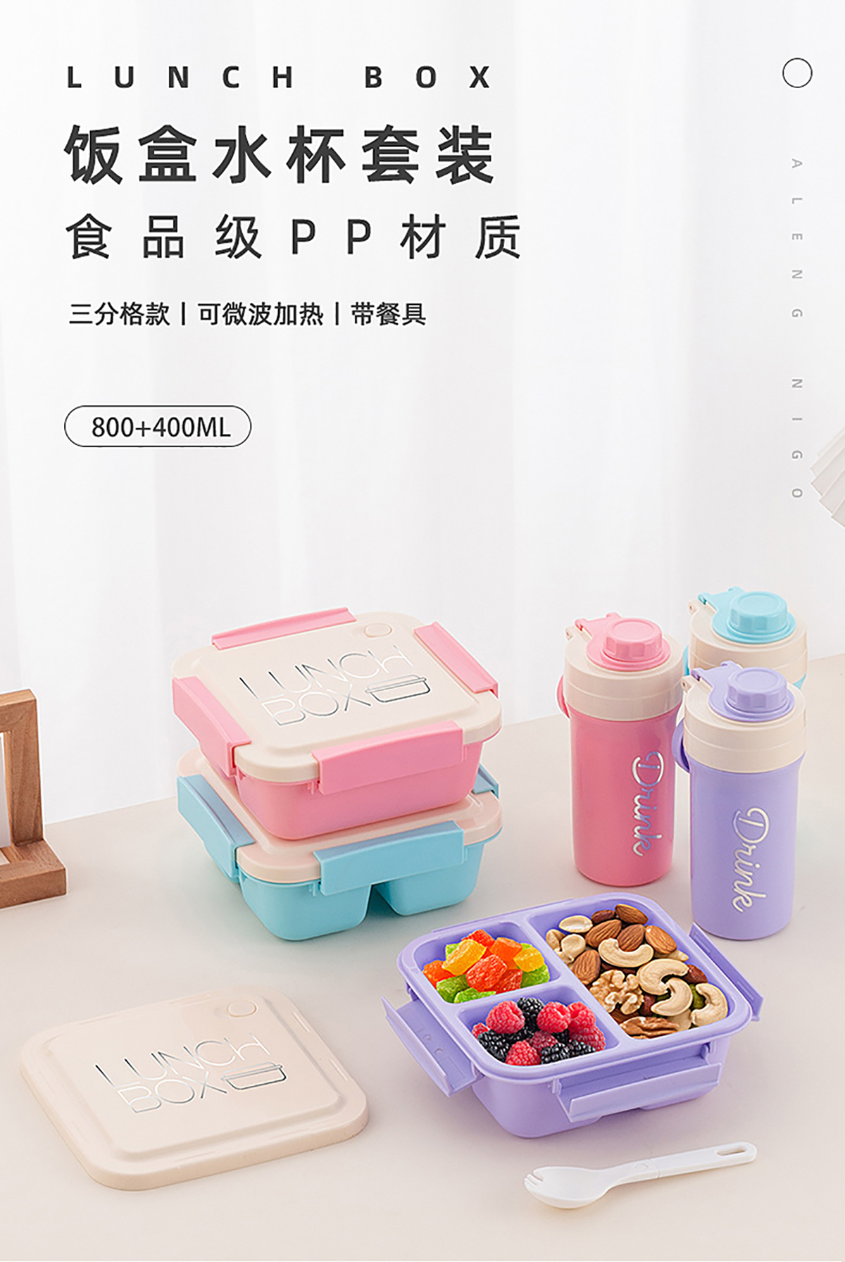 Size: 饭盒:173*161*68mm/800ml 水壶:φ82*61*163mm/400ml