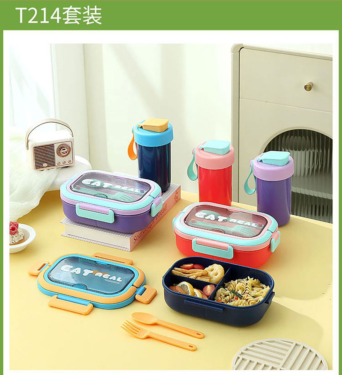 SWY-T214(套装款):饭盒:215*149*71mm/1000ml 水壶:直径8.2*高16.1/480ml