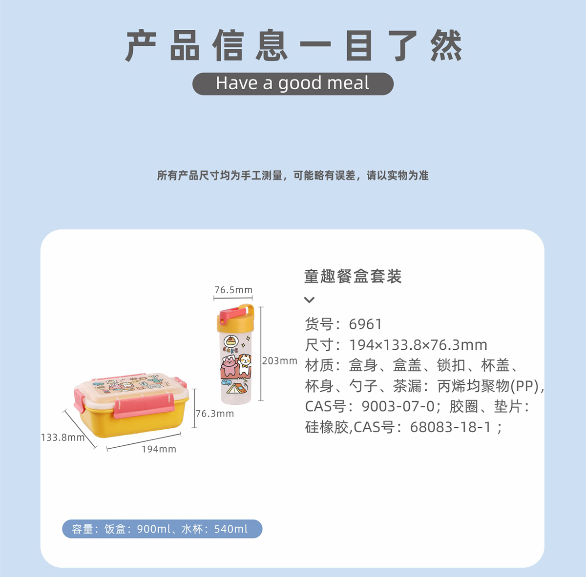 Size: 水杯:76.5*203mm 饭盒:194*133.8*76.3mm