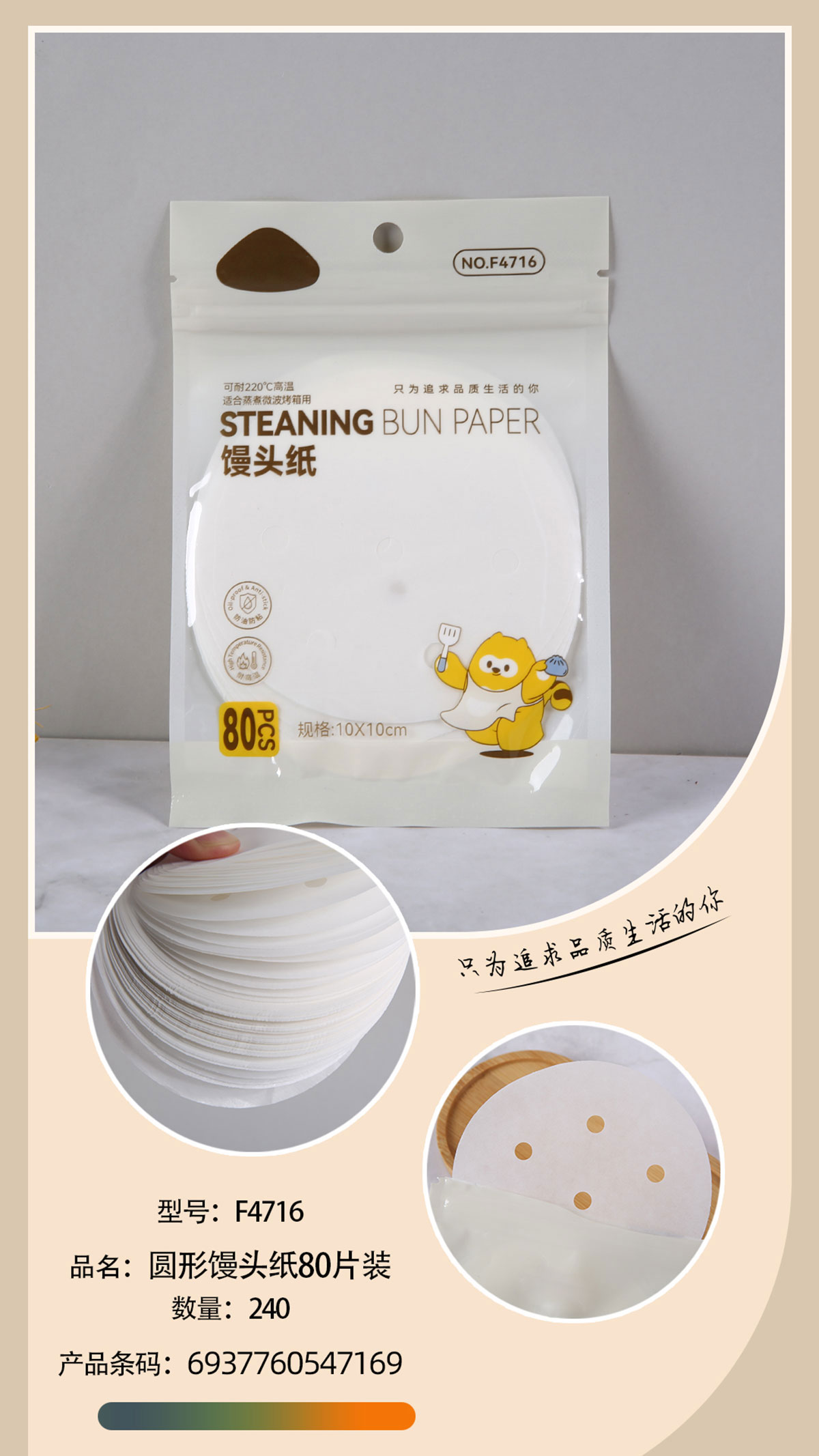 饲养圆形馒头纸80片装
