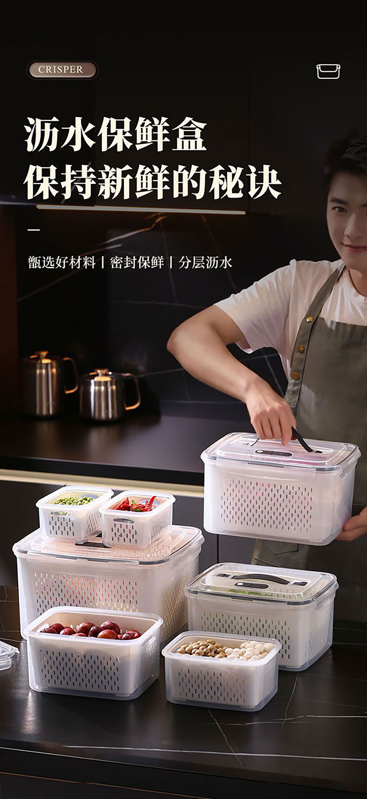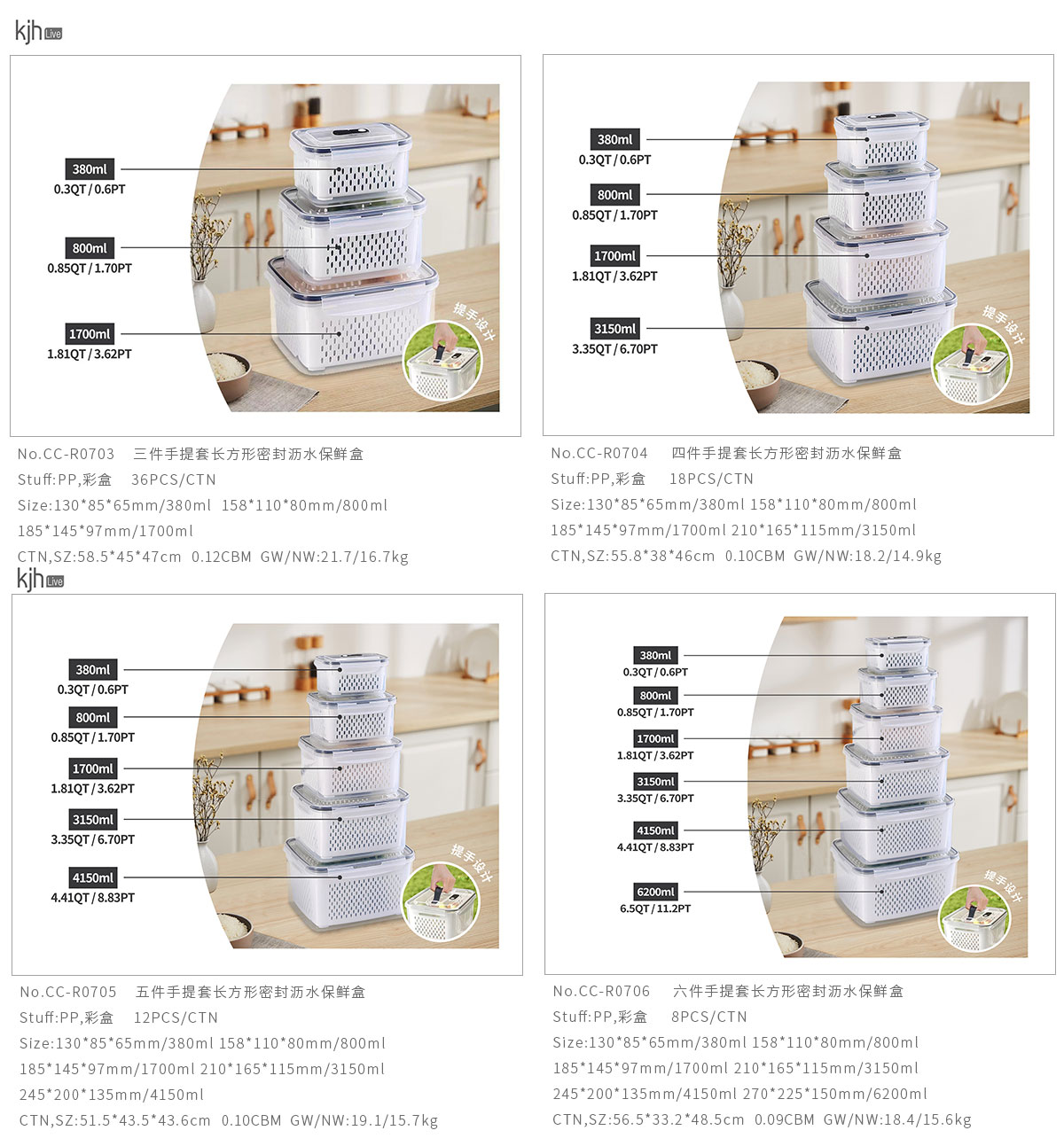 三件/四件/五件/六件/七件手提套长方形密封沥水保鲜盒