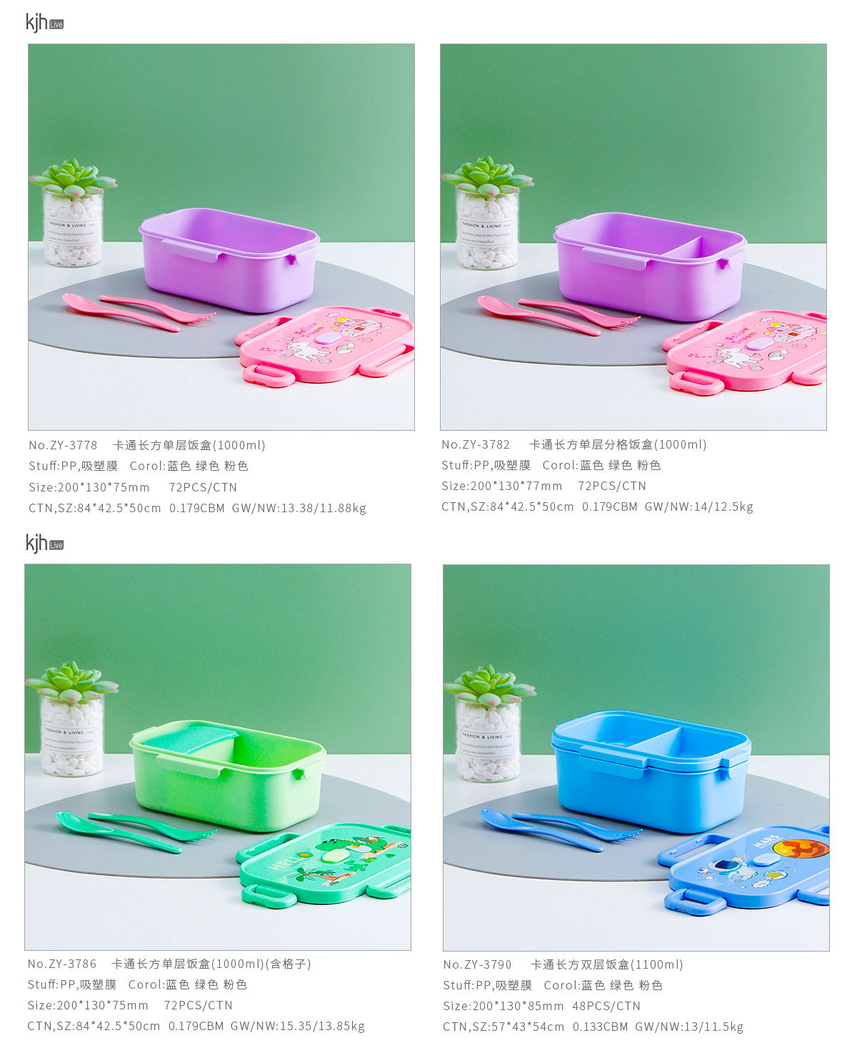 卡通长方单层/单层分格/单层含格子/双层饭盒