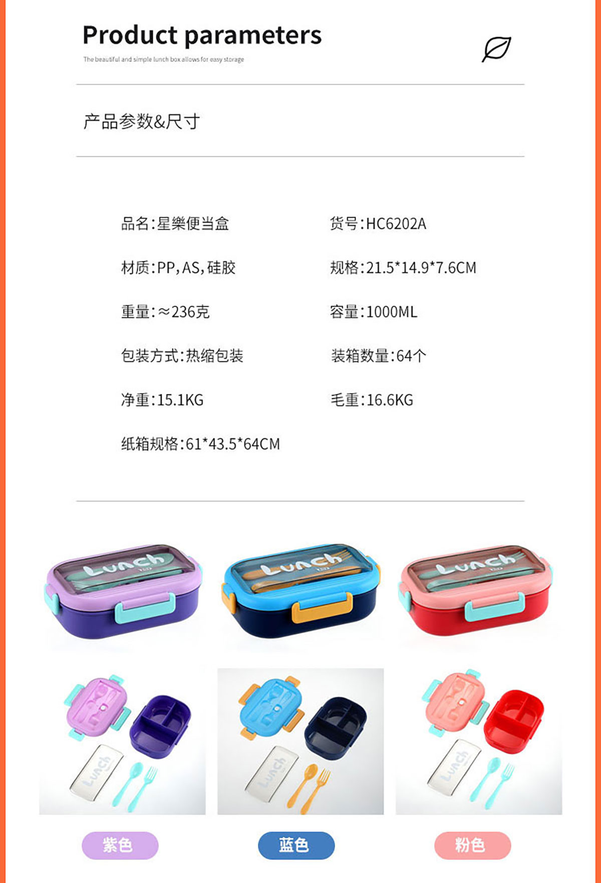 星樂便当盒(PP矮款/PP加高款/不锈钢矮款/不锈钢加高款/水杯套装)