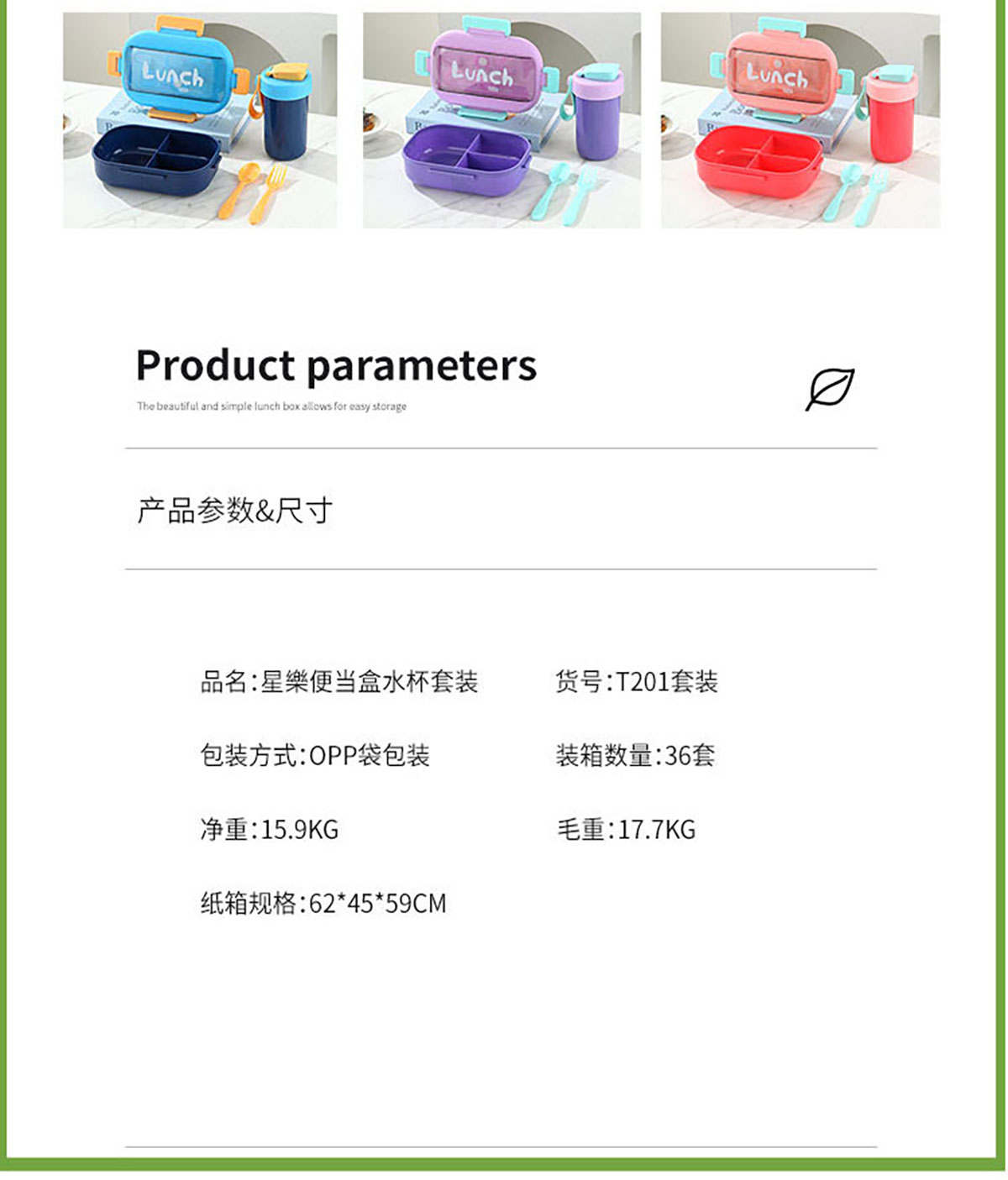 SWY-T201(水杯套装):饭盒:215*149*76mm/1000ml 水壶:直径82*161mm/480ml