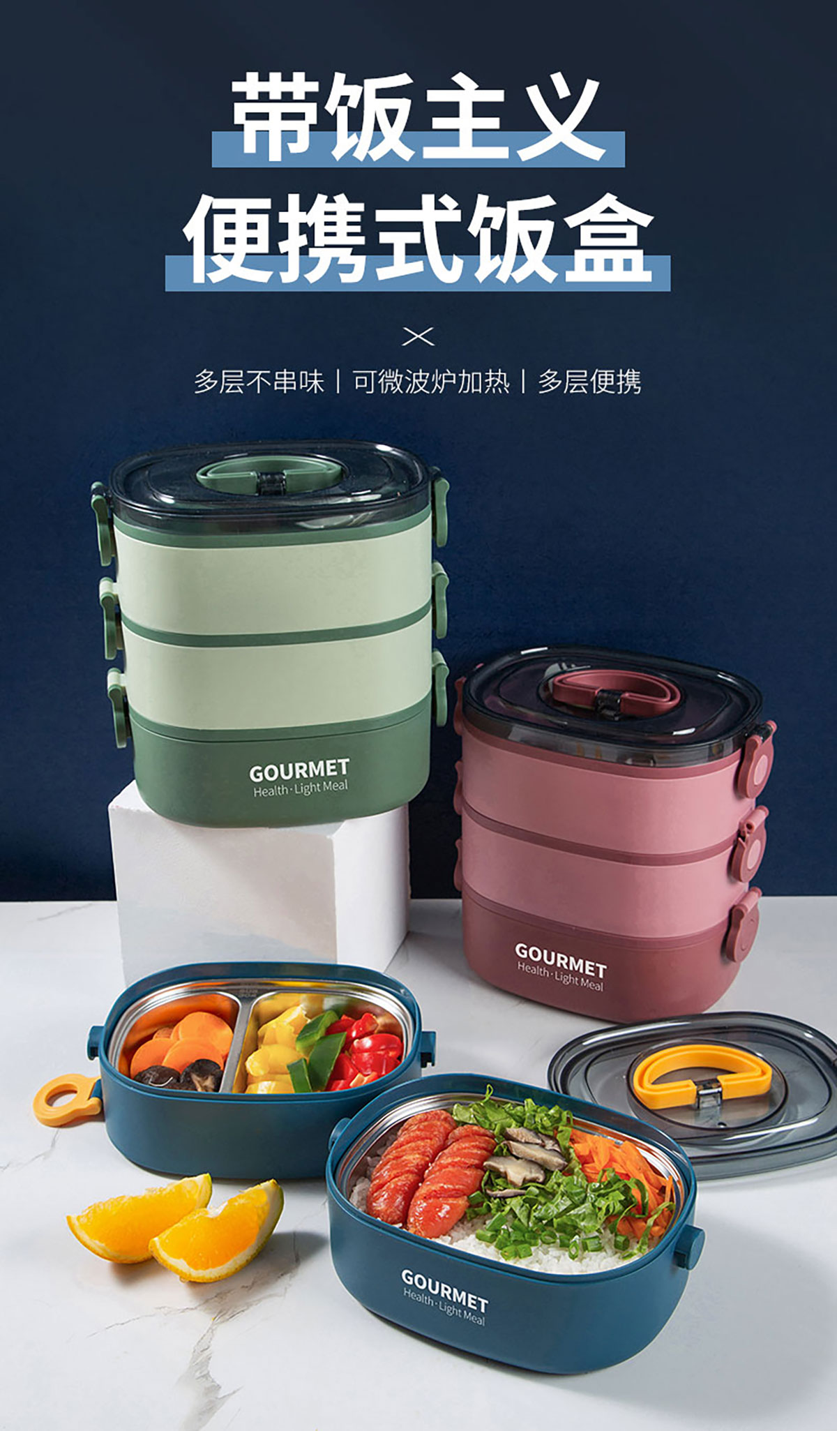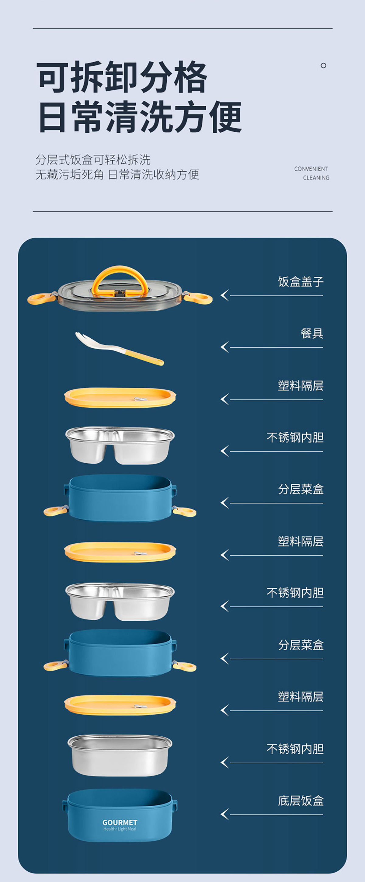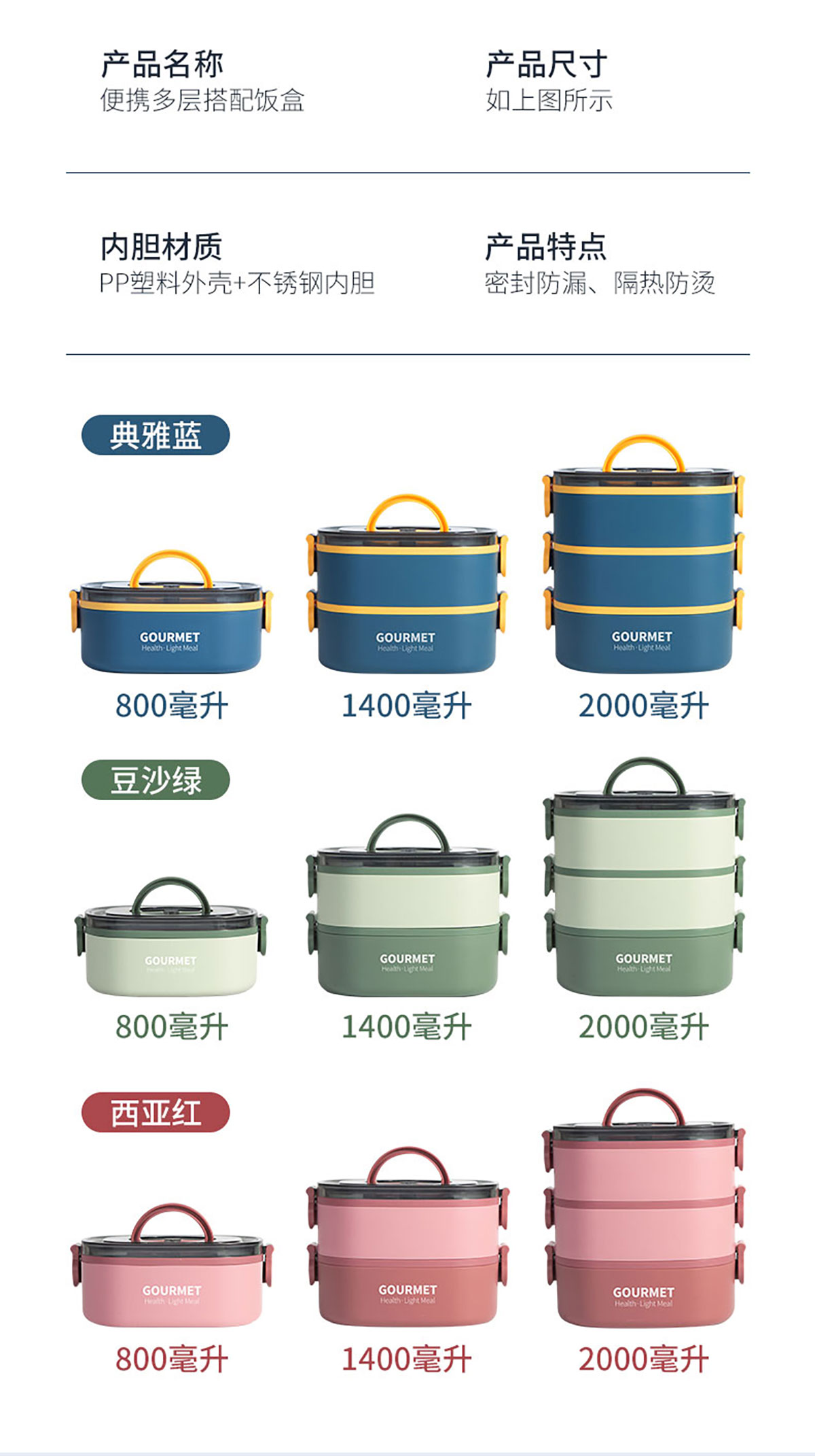 味鲜椭圆单层/双层/三层不锈钢饭盒