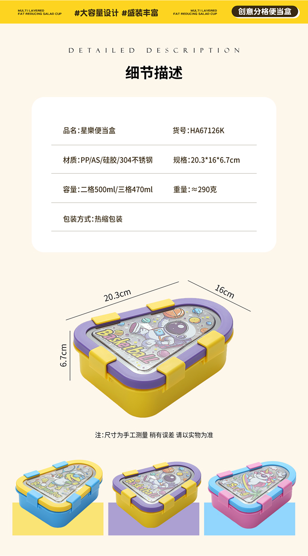 Size: 203*160*167mm/二格500ml/三格470ml