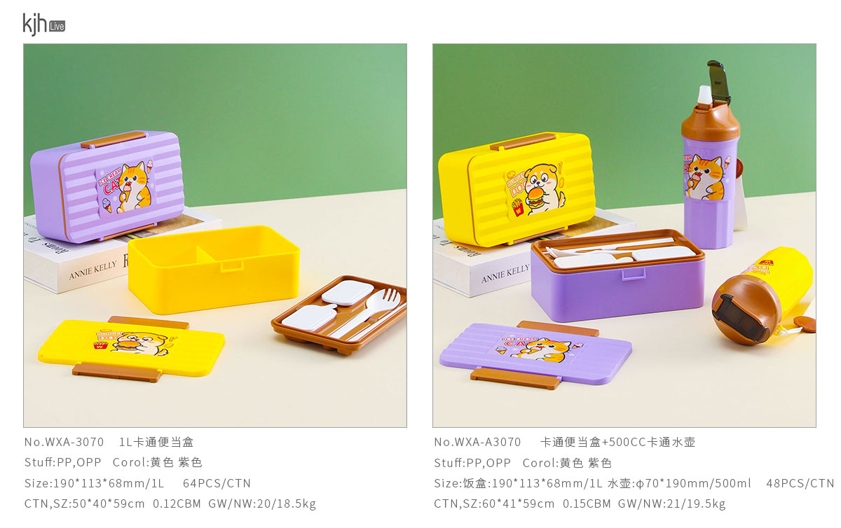 Size: WXA-3070:190*113*68mm/1L WXA-A3070:饭盒:190*113*68mm/1L 水壶:直径70*190mm/500ml