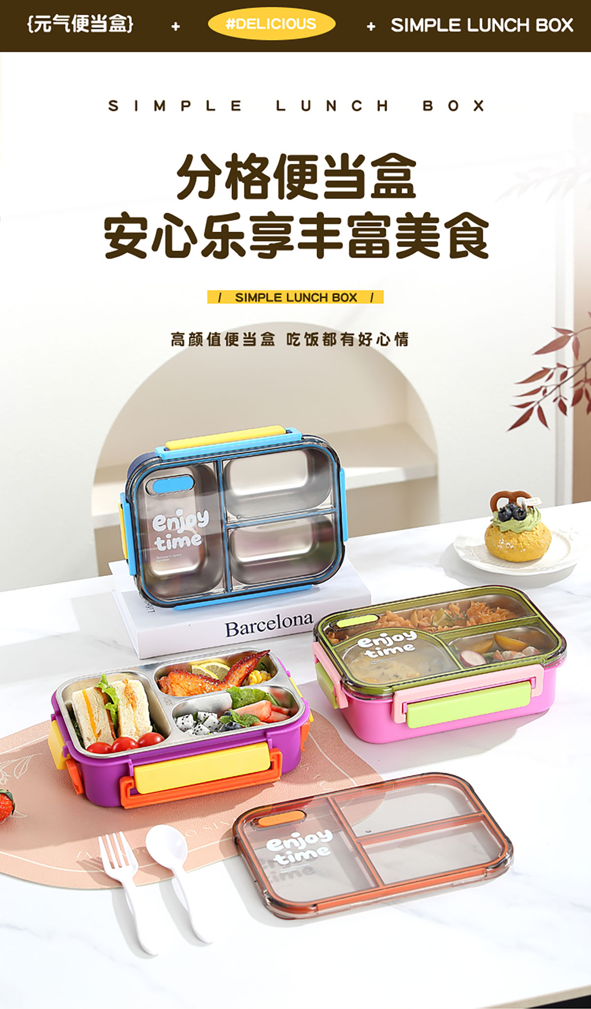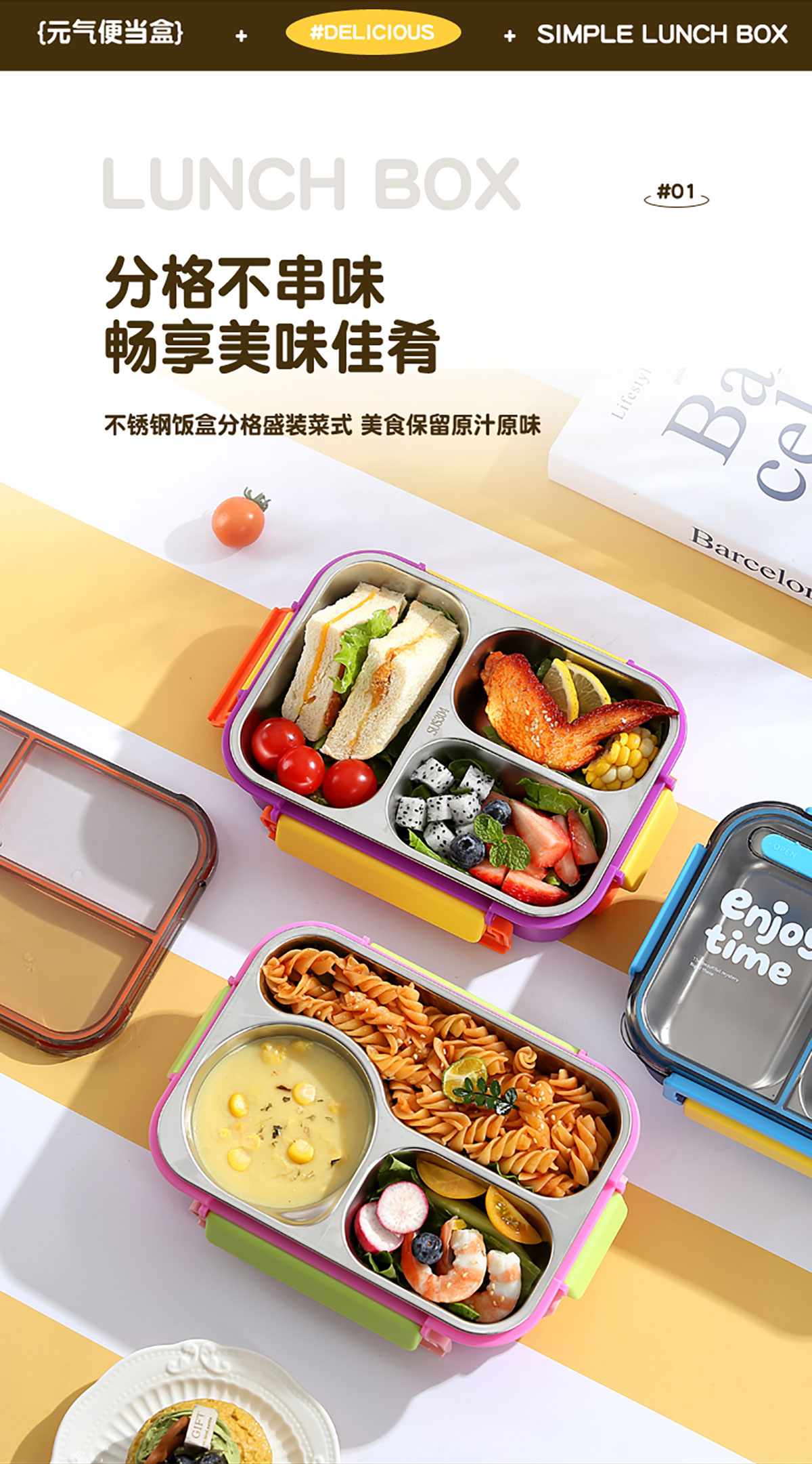 Size: 225*165*68mm/三格700ml/三格带碗650ml