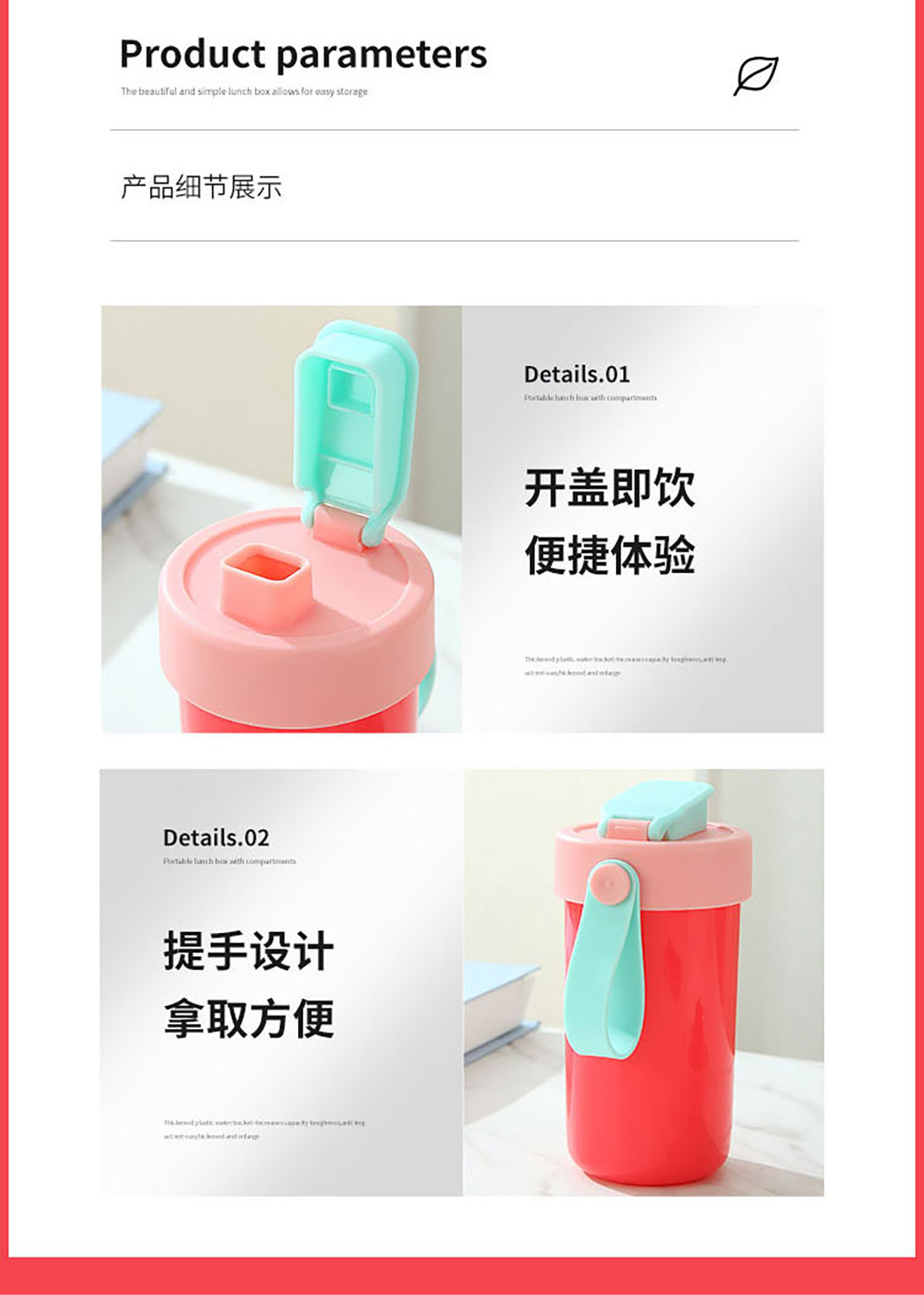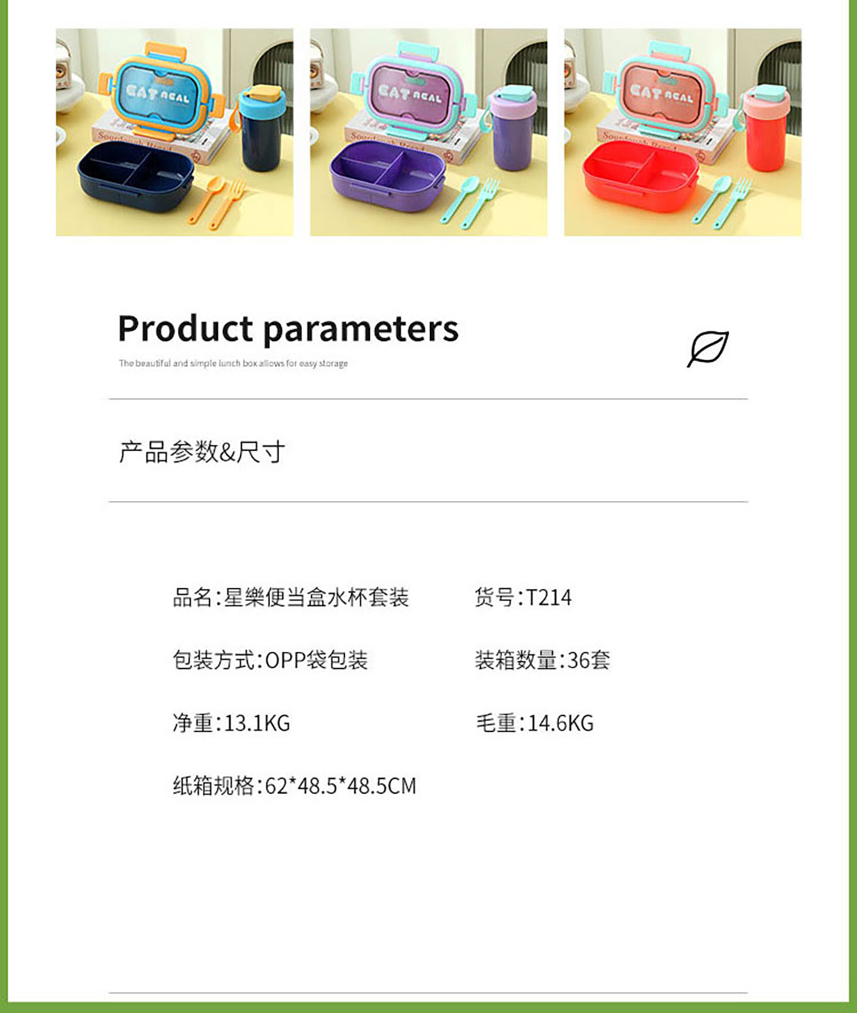 SWY-T214(套装款):饭盒:215*149*71mm/1000ml 水壶:直径8.2*高16.1/480ml