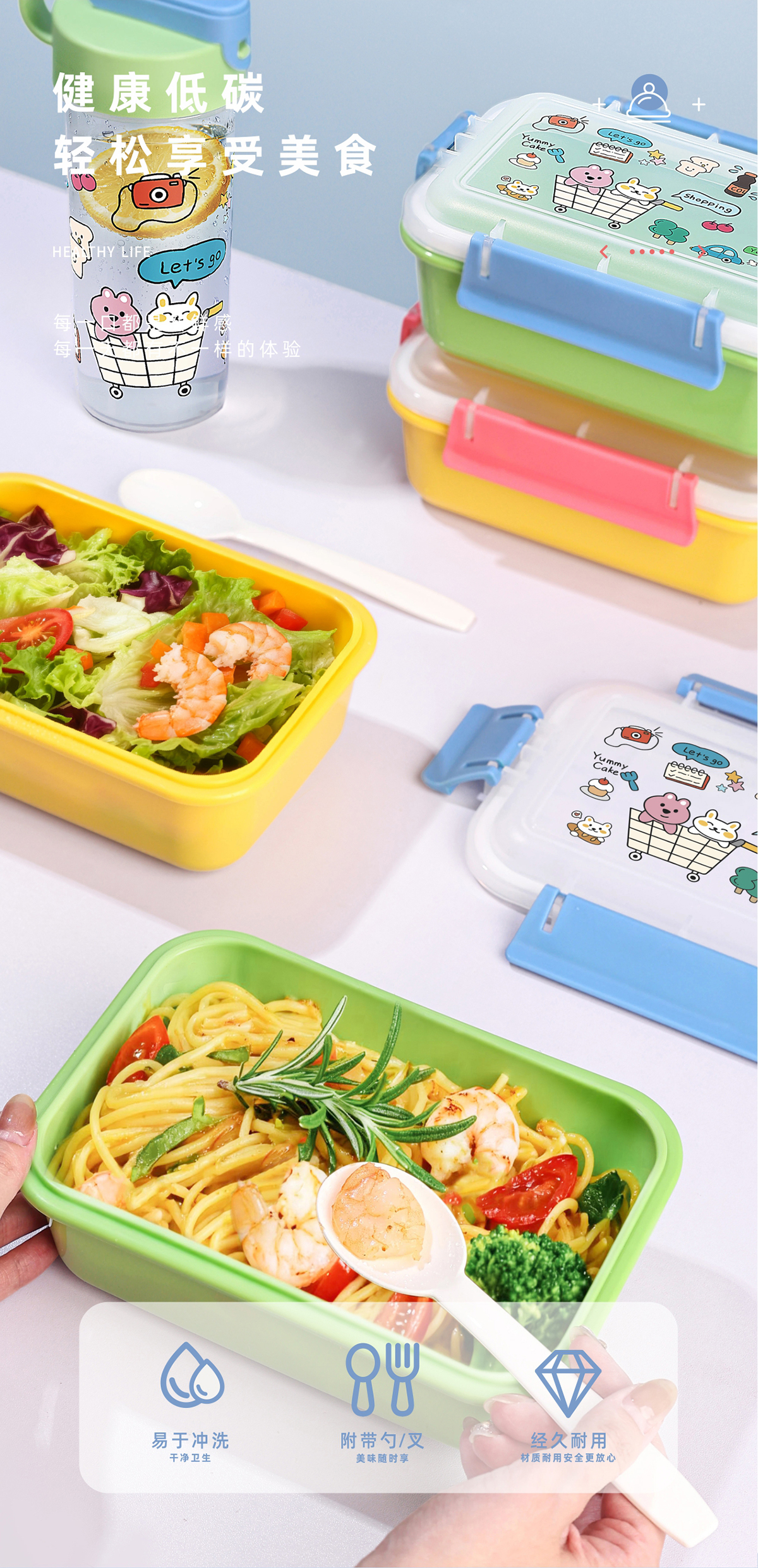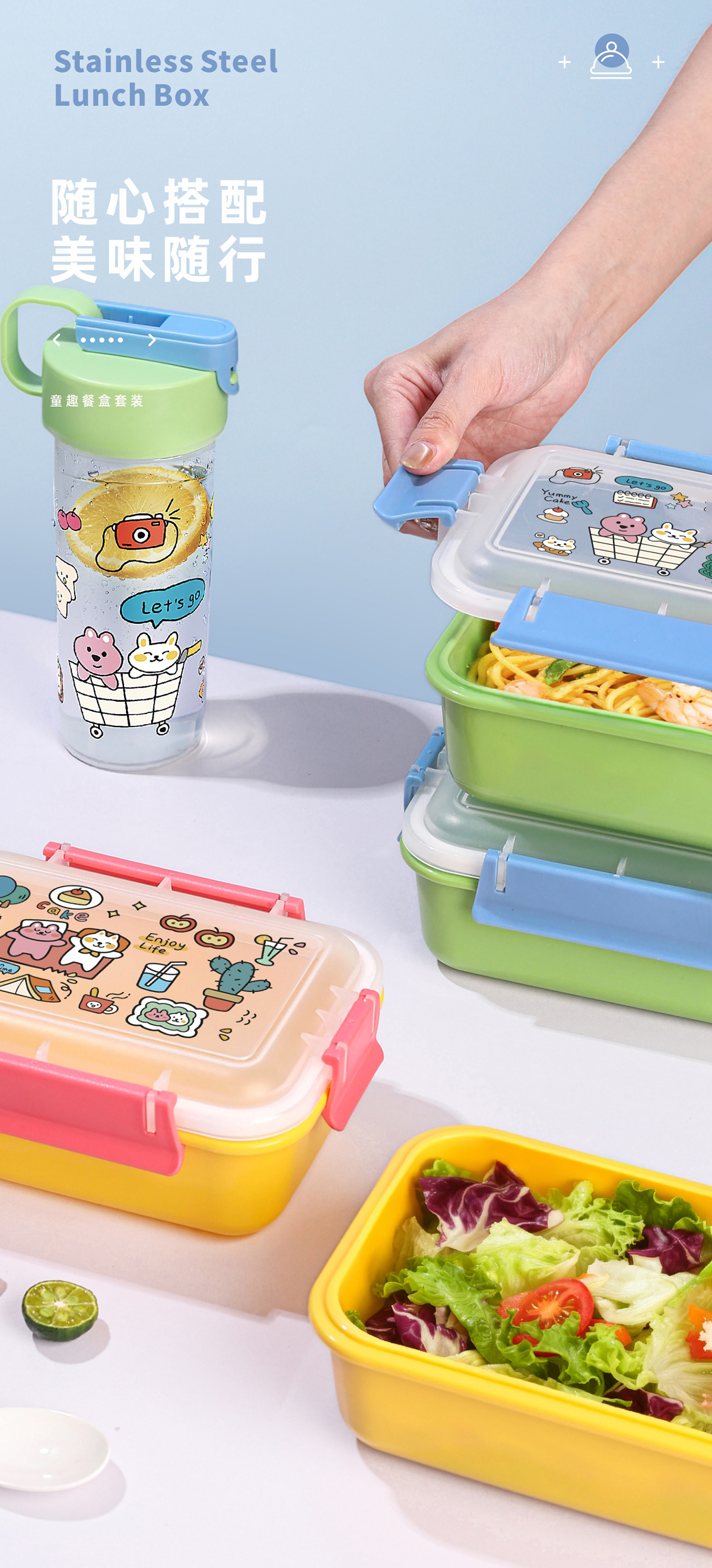 Size: 水杯:76.5*203mm 饭盒:194*133.8*76.3mm