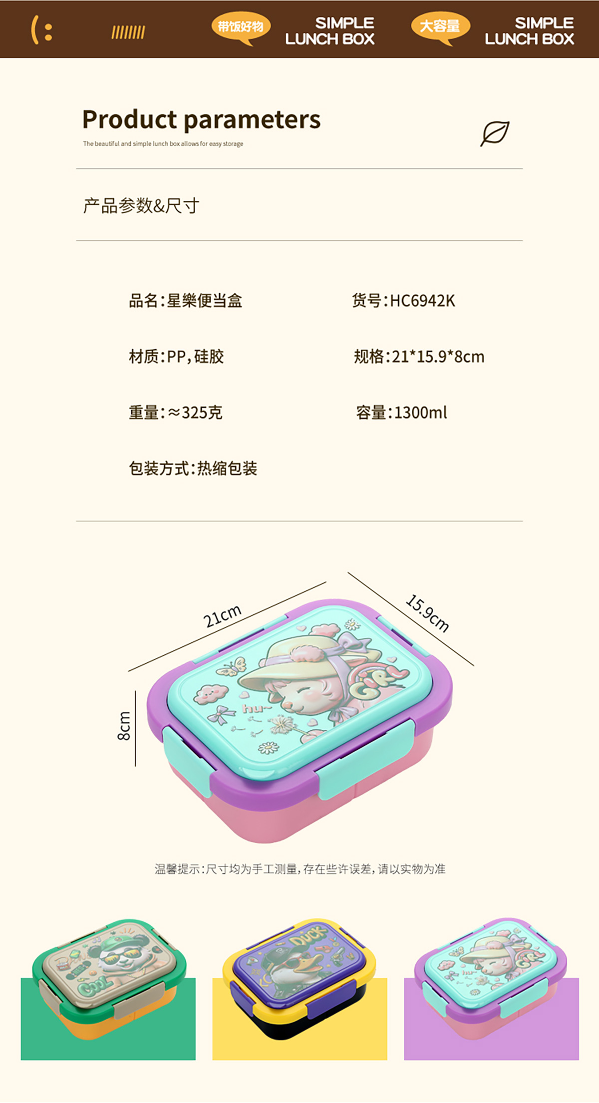 Size: 210*159*80mm/1300ml